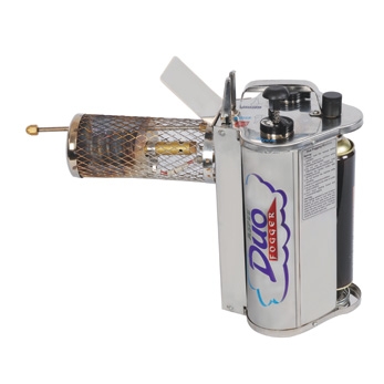 ASPEE Duo fogger is a thermal fogging machine. Two separate S.S. water tank and chemical/Diesel tanks are provided. Water tank is provided with hand pump for supplying pressurized air which sends chemical or water through valve, to the coil via two way cut-off valves. Water tank & chemical/Diesel tank are joined together and develop even pressure in each tank. 1.5 volt electronic sparker is provided to ignite the LPG gas through burner. Burner flame is controlled by flow control knob above LPG cylinder